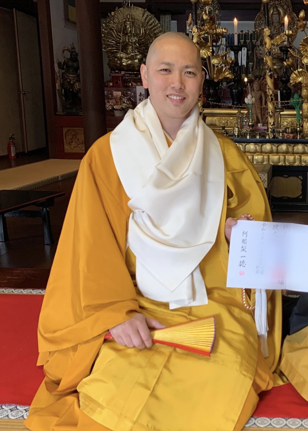 本堂には千手観音、文殊菩薩、薬師如来(月光菩薩、日光菩薩)、大黒天、大日如来、不動明王、八大龍王、嵯峨天皇、弘法大師の像が置かれています。
